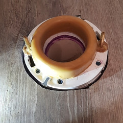 Went into the crawlspace to cut off 3" PVC toilet drain pipe. Used glue coupling to bring pipe up through floor. Used glue on flange, and secured it to subfloor. I use purple primer and clear heavy duty glue together to make a strong, long-lasting, leak free joint.